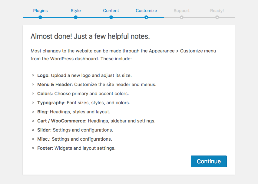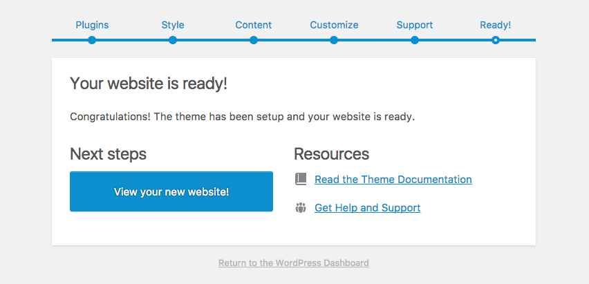 Congratulations! The theme has been setup and your website is ready.